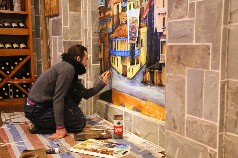 Georgian wine salon "Tamada". Showroom mural. Urumqi, China 2014